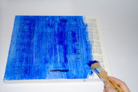 Всю поверхность коробки покройте синей краской. Желательно красить в одном направлении. Дайте краске высохнуть.