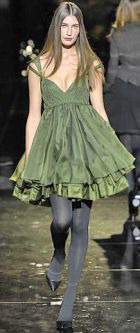 Кстати, это может выглядеть весьма сексуально. Например, в коллекции от Sonia Rykiel представлены воздушные летящие платья из прозрачных тканей (и черные, и белые, и других нежнейших оттенков), сквозь которые легко просматриваются плотные черные чулочки на старомодных и очень эротичных подвязках или резинках.