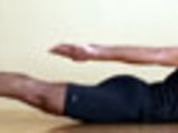2. На выдохе голова, грудь, ноги одновременно медленно поднимаются как можно выше от пола. Соответственно, вес тела полностью сосредоточен на области живота. Мышцы бедер, ягодиц, живота напряжены. Ноги полностью вытянуты, при этом бедра, колени и лодыжки должны быть сомкнуты. Руки вытянут вдоль тела, напряжены, необходимо их вытянуть назад таким образом, чтобы были задействованы мышцы верхней части спины.