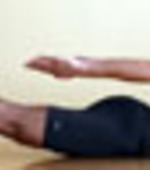 4. На выдохе – наклониться таким образом, чтобы лоб коснулся коленей, затем опустить локти на пол.