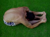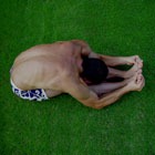 5. Поза имеет дальнейшее продолжение: когда кисти сцепляются за стопами, подбородок должен оказаться на голенях ниже колен.