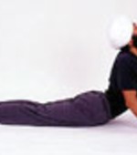 5. На выдохе наклониться вперед и коснуться пола сначала лбом, затем носом, а затем – подбородком, максимально вытянув шею.