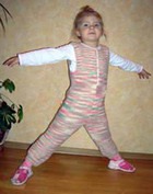 Для расширения полотна в каждом 6-м ряду прибавлять по 2 петли (рядом с краевыми петлями, в начале и конце ряда, делать по 1 накиду), получится 89 петель. Провязать еще 2 ряда, закрыть в начале ряда 10 петель, в начале следующего ряда закрыть еще 10 петель. На оставшихся 89-20=69 петлях вязать по прямой еще 60 рядов платочной вязкой и 16 рядов на спицах 2,5 резинкой 1х1 (верхняя часть штанины). Можно спицы не менять, а постараться резинку на талии вязать потуже, петли не закрывать, нить не обрывать. Связать точно такую же вторую штанину, оборвать нить, оставив хвостик 15-20 см, им будет удобно сшить верхние части первой и второй штанин (попу).
