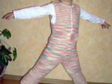 Пришла зима. Малыши за лето выросли, и им необходимы теплые и красивые обновки. Для прогулок очень удобен комбинезон с застежкой спереди. В модели из ниток секционного крашения использованы два узора: платочная вязка (во всех рядах все петли лицевые) и резинка 1х1 (чередование 1 лицевой и 1 изнаночной петли). Для отделки пройм и застежки использованы столбики без накида. Такой комбинезон с прямоугольными проймами и горловиной по силам связать своему ребенку даже очень неопытной мастерице.