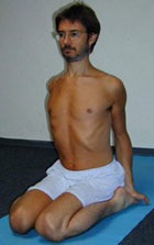 Примечание: Если поначалу выполнение позы затруднительно, можно сначала положить одну стопу на другую и поместить на них ягодицы. По мере освоения позы раздвигать пальцы ног и разводить стопы, чтобы привести их в положение по бокам бедер.