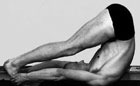 2. На выдохе медленно поднять прямые ноги и постараться положить их за голову, помогая себе руками (пальцы рук обхватывают пятки). Идеально – пальцы ног касаются пола.
