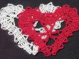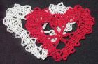 Для работы использованы красный и белый «ирис» фабрики им. С.М. Кирова, крючок №1,25, размер каждого сердечка - 11х9 см.