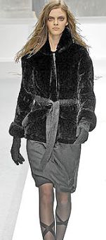 Особенностью нынешнего сезона являются и многочисленные эксперименты с длиной и шириной рукава на классических меховых жакетах. Широкий рукав длиной в три четверти или еще короче словно создан для того, чтобы носить узкие длинные перчатки из темной кожи. На контрасте фактур и объемов тонкое девичье запястье смотрится особенно трогательно и изящно.
