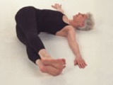 3. Сделать в этом положении несколько дыхательных циклов, затем прямые ноги медленно опустить направо, при этом плечи должны оставаться на полу.
