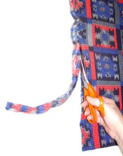 5. 6. На коротких сторонах ткани прорежьте маленькие дырочки, расстояние между ними может быть произвольным, делайте их «на глазок».