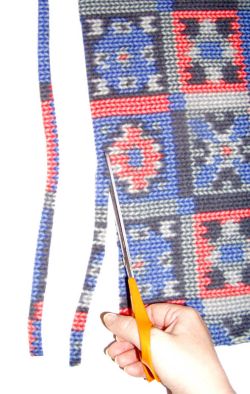 3. 4. Затем с длинной стороны отрежьте 10 полосок по одному сантиметру и разрежьте их на отрезки разной длины от 20 до 30 см.
