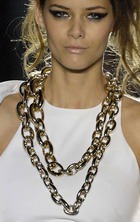 Так что нет ничего удивительного в том, что бижутерия из легких металлов с «золотым» покрытием способна украсить и ваш праздничный образ. И, прежде всего, следует обратить внимание на разнообразные цепочки. В этом сезоне вновь царствует тенденция носить сразу по несколько металлических цепочек разной длины и разной формы. Конечно, для повседневной жизни лучше отдать предпочтение тонким, едва заметным цепочкам из настоящего золота. Но праздничная одежда – это всегда немного чересчур.