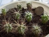 И только хорошо развитые и крепкие сеянцы уже готовы к своей первой зимовке в комнатных условиях. Режим, конечно, отличается от такового для взрослых кактусов, которые зимуют в довольно жестких условиях. Сеянцы должны зимовать с ноября по январь на хорошо освещенном окне при температуре 12-15°С. В этот период поливают их реже, примерно один-два раза в месяц, по краям посуды, чтобы не смачивалась корневая шейка. Кстати, если сеянцы к зиме достигли диаметра более 1 см, то они уже способны зимовать и при более низкой температуре вместе со взрослыми кактусами. Слабо развитые сеянцы в первую зиму лучше оставить в условиях теплички, как в предыдущие месяцы.