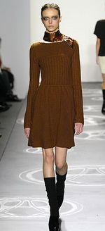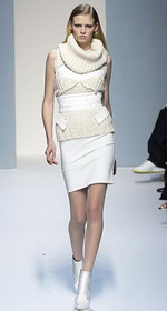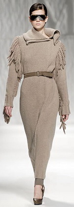 В это межсезонье и стилистика, и фактура трикотажного полотна существенно изменились. Оно ближе к ручной вязке, тоже более рыхлое и мягкое, воздушное. Понятно, что под такое полотно напрашиваются и другие модели. Это могут быть укороченные платья с завышенной линией талии, прямые цельнокроеные платья-футляры ниже линии колена, длинные платья с большими воротниками и какой-нибудь оригинальной отделкой все из тех же шерстяных нитей.