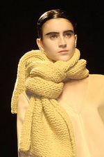Если в прошлом сезоне большинство дизайнеров представляли очень длинные и очень узкие шарфы, которые выглядели стильно, но были не слишком комфортными, то на этот раз ситуация изменилась кардинально. Шарф должен быть скорее средней длины (но остаточный, чтобы несколько раз обернуть им шею) и достаточно широким. К тому же он должен быть из толстой пряжи и достаточно рыхлого вязания.