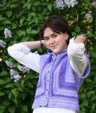 Капюшон стал неотъемлемой частью молодежной одежды. В куртках, жилетах, футболках и даже в летних платьях используется эта деталь. Для вязания этого полуажурного жилета с прямоугольной проймой потребовалось 400 г пряжи сиреневого цвета различных оттенков и фактуры (тонкая нить двух цветов 1600 м / 100 г в 6 сложений и тонкая синель), крючок 3,0 и 7 маленьких пуговок. Количество цветов нити и варианты их сочетания (полоска, тональный переход, контраст) определяются Вашими возможностями и запасами. Важно, чтобы нити были близкой толщины, вариант модели - дело вкуса и фантазии рукодельницы.