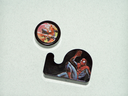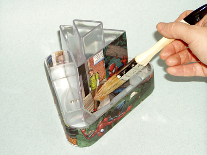 Еще несколько рисунков прикрепите на аксессуары, например, точилку и скотч. Дайте клею высохнуть. В заключение для прочности декора нанесите два-три слоя лака.
