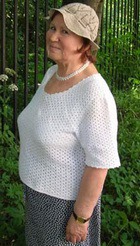 С работами Юлии Алексеевны Вы уже знакомы (шапочка с розами и берет со спиральками). К приближающемуся лету мы выбрали летнюю белую блузу. Сделать выкройку по своим размерам и выполнить расчет по своему образцу по силам даже начинающим рукодельницам. Все линии модели прямые: горизонтальные, вертикальные или наклонные с убавлением 1 столбика в каждом ряду.