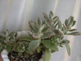 Вся прелесть – в листьях: продолговатые светло-зеленые мясистые листовые пластинки густо покрыты белым опушением, по краю они имеют едва заметные зубчики ярко-коричневого цвета. Очень эффектное и привлекательное сочетание! Кстати, за эту деталь каланхое войлочное в народе получило трогательное прозвище - «кошачьи ушки».