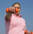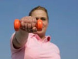 1. Делая шаг в сторону, выпрямляем руку. Гантелька повернута вниз.