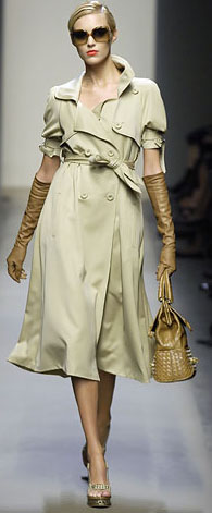 Например, Дом моды Bottega Veneta предлагает по-новому взглянуть на тренч: использовать шелк с атласной поверхностью, чуть завысить линию талии, сделать фигурную кокетку, добавить высокие перчатки. С таким легким плащом можно носить белую блузку с узкой классической юбкой или прямые брюки в мужском стиле.