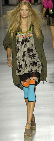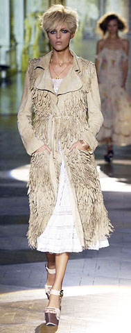 Среди других особенностей нынешнего модного сезона можно назвать необычную отделку пальто из легких «летних» тканей, которые сами по себе превращают пальто в базовый предмет дамского гардероба. Например, у Sonia Rykiel все атрибуты традиционного пальто просто нарисованы на том, что вполне можно считать платьем. А Roberto Cavalli отделывает свое летнее пальто полосами из своеобразных вязаных дредов, которые были очень популярны и в осенне-зимнем сезоне.
