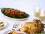 Потребуется 1 курица (2 кг), 0,5 кг свинины, 30 г сливок, 3 яйца, 30 г коньяка, щепотка тертого мускатного ореха, 1 репчатая луковица, 1 ст. ложка отваренного риса или гречки, черный молотый перец и соль по вкусу.