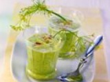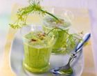 Перед подачей заправить суп льезоном из молока и желтков (желтки взбить с молоком и прогреть на водяной бане до загустения) и посыпать мелко нарезанной зеленью. Подать суп с гренками из ржаного хлеба.