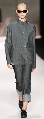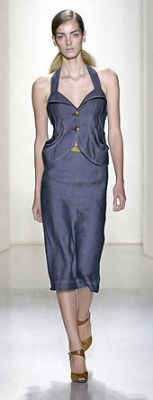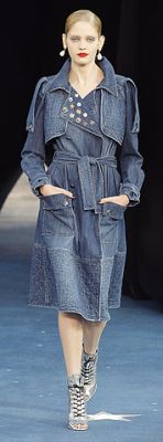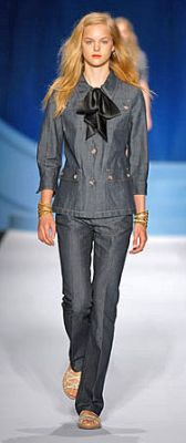 А те дизайнеры, которые склонны к созданию повседневной одежды для современной городской жительницы, представили очень комфортные комплекты из денима. В первую очередь это относится к коллекциям от Donna Karan, Stella McCartney, MaxMara, Sport Max. Здесь мы можем увидеть капри из денима с широкими отворотами, приталенные жакеты с рукавами в три четверти, зауженные юбки и даже весьма любопытные этакие полувоенные лаконичные тренчи.