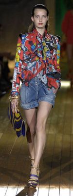 И вот уже в нынешнем сезоне мы видим классические рубашки из денима (в основном традиционных оттенков блюмарин и индиго) в коллекциях от Emilio Pucci, D&G, Nina Ricci, Alexander McQueen и многих других.