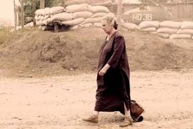 Обычная тележка для покупок едет по пыльной земле. Такая же старая и такая же ворчливая, как ее хозяйка. Хозяйка тоже самая обычная: российская бабуля, из тех, которых ничем не удивишь и которые ничего не боятся. Тележка едет за своей хозяйкой на рынок, и в этом не было бы ничего особенного, если бы не хвосты мин, там и сям торчащие из земли, да обилие людей в военной форме, да разрушенные давними бомбежками здания. Как же оказалась здесь, на чеченской земле, такая мирная и такая обыденная бабушка с тележкой?