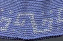 Выполнение узора только лицевыми рядами искажает узор, вертикальные линии немного наклоняются, выбранный узор это изменение не испортило, поэтому цилиндрическая часть связана по спирали лицевыми рядами, место начала нового ряда расположено между узорами на синей вертикальной полосе.