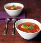 Помидоры, репчатый лук, корень петрушки мелко нарезать, спассеровать в масле, добавить отваренную вермишель, шафран и тушить еще 3 минуты. Добавить бульон, посолить и поперчить, вскипятить. Подавать суп с тертым сыром.