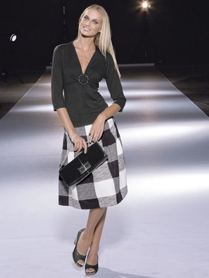 Если вы желаете выглядеть более женственной и сексуальной, вам следуем вспомнить про юбку. В сочетании с облегающим трикотажным пуловером такая юбка будет смотреться поистине восхитительно.