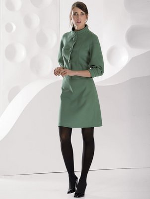 Костюм-двойка, в котором пиджак и юбка призваны подчеркнуть достоинства вашей фигуры. Пиджак с воротником-стойкой, на пуговицах, с рукавом 3/4 в комплекте с мини-юбкой – вариант для женщин с красивыми ногами.