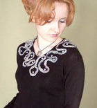 Срезанный шов наложите на джемпер в виде изогнутой линии, спрятав концы под него же. Отделку можно расположить в любом месте: на рукавах, на плече или же на всей передней половинке джемпера.