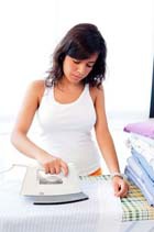 4. Гладят вискозу утюгом, нагретым до 150°С (установка «шелк»), во влажном состоянии или через влажную ткань.