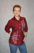 Аналогичный декор выполните на верхней части противоположной полочки. При желании вы можете украсить спинку блузки, разместив рисунок посередине.