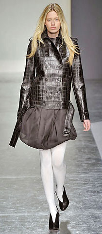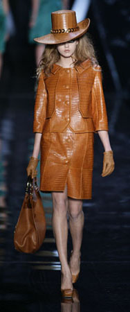 Компромиссом между умеренностью и брутальностью в этом сезоне стали вещи из кожи крокодила и других рептилий (или их качественной имитации). Они отличаются крупной подчеркнутой фактурой, разнообразием цветовой палитры (терракотовый, черный, синий, лиловый, травянисто-зеленый).