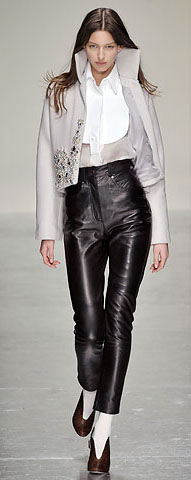 Другой мотив, который объясняет появление на мировых подиумах достаточно большого количества кожаных предложений, – это цитаты из моды восьмидесятых годов, которые присутствуют не слишком обильно, а скорее, весьма умеренно. Наверное, даже не стоит напоминать, как были тогда популярны кожаные плащи и куртки.