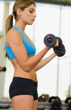 Прорабатываем область талии. Наша задача - уменьшить количество жировых отложений в этой области. Тренировку проводим в быстром темпе, интервал между подходами составляет 3–4 минуты. Надо подобрать 2–4 упражнения и выполнять их по 4–6 подходов. Вес подобрать так, чтобы можно было выполнить 15–20 повторений.