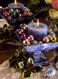 Наверняка в вашем доме есть какой-то раритет, который большую часть года пылится за стеклом серванта: дорогое серебряное блюдо, керамическая вазочка, доставшаяся от бабушки, или красивый поднос, который жалко использовать по прямому назначению. Настало время «показать лицом» вашу «драгоценность», включив ее в новогоднюю композицию. Ее даже не нужно слишком украшать, чтобы не затмить оригинальной красоты – просто добавьте несколько елочных игрушек или декоративных свечей, которые подчеркнут ее своеобразие. Такое украшение можно поставить даже на новогодний стол.