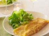 Яйца взбить с 1 ст. ложкой измельченной петрушки и укропа, посолить по вкусу и поджарить на сковороде с растопленным маслом. Свернуть в трубку или сложить в виде пирога. Переложить на блюдо и облить соусом. Для соуса масло смешать с мукой, хорошо растереть, чтобы не было комочков. Добавить, помешивая, сметану и желтки, ложечку сахара, довести до кипения, продолжая мешать. Когда соус загустеет, облить им омлет и обсыпать сахаром с корицей.