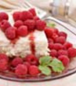 Желатин замочить в холодной воде. Засахаренные фрукты мелко нарубить. Желатин отжать и распустить в водке на слабом огне. Взбить сливки, постепенно всыпая сахарную пудру. Часть взбитых сливок перемешать с желатином, добавить к оставшимся сливкам и смешать с фруктами.