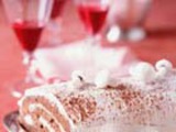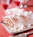 Обязательное угощение на Рождество у французов - рождественское полено. Это традиционный французский праздничный торт, украшенный кремом и напоминающий полено с сучками. Торт довольно сложно украшен: сучки дерева из крема, грибочки из меренг, цветы и листья из крема, сахарные помадки и прочее. Кроме того, в качестве украшения добавляют маленькие фигурки из дерева, стекла, фарфора, пластмассы и т.п. Впрочем, современные дамы обычно не отягощают себя лишними заботами. Всевозможные съедобные фигурки, шарики, звездочки и сердечки можно купить в любом супермаркете.
