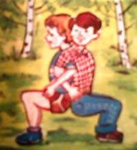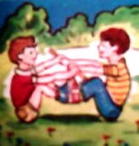 - Всем известно, что для мальчишек нет ничего интереснее, чем потягаться силой со своим товарищем или братом, как в нашем случае. Я предлагаю вам три упражнения–игры. Попробуйте занять ими детей. В них есть и польза, как от спортивных занятий, и азарт соревнований.