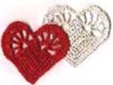 Сердечки связаны из красного и белого ленинградского «Ириса» крючком 1,25. К белой нити добавлена нить золотого люрекса. Размер мотива - 5,5х5,5 см.