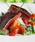 Филе тунца можно жарить на сковороде или гриле, а также запекать. Если вы собираетесь его жарить, не забывайте, что тунец должен оставаться тунцом: переворачивайте и снимайте его с огня, как только поверхность слегка подрумянится. Идеально прожаренный кусок имеет на срезе в середине светло-розовый цвет, ближе к краям - коричневый.