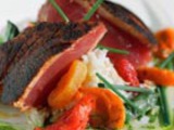 Обжаривать тунца на сковороде лучше в оливковом масле. А если вы предварительно в течение 10 минут выдержите рыбу в соевом соусе, смешанном с медом (3:1), она получится еще вкуснее.