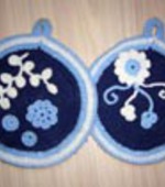 3. Нашить украшения на чехлы и вышить листики и стебельки зелёной пряжей обычным стебельчатым швом.